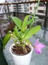 Jag köpte den på Rosendal i Uppsala för några år sedan. Den höll på att dö och hela rotsystemet hade ruttnat. Men jag fick liv i den igen och nu blommar den. Vad är det för Cattleya? En Gaskelliana eller?