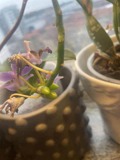 Min Doritaenopsis Aida har som vanligt blommat länge. Stängeln nu 25+ cm med blomma i toppen. Nu ser det ut som att det är rötter på gång i toppen. Är det möjligt?